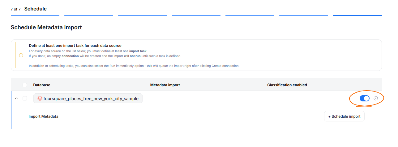 For already imported metadata, you can edit this parameter when managing sources. The toggle will appear next to the scheduled import task in the overview tab.