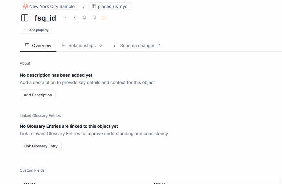 You might not agree with the automatically detected Type of a column, or work with sources for which automatic Data Classification is not supported. Whatever the reason might be, Dataedo allows you to manually edit and assign them directly from the object's overview, using the Add property button.