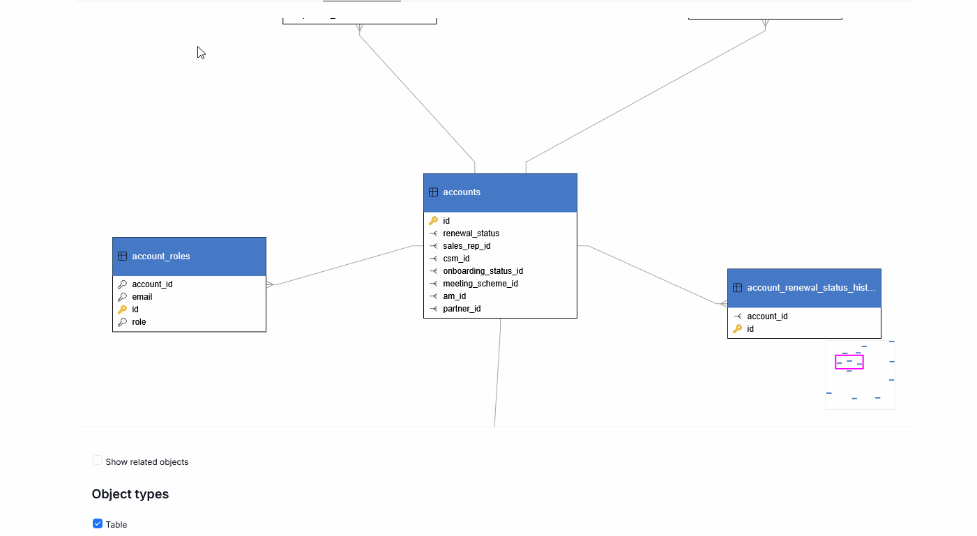 Entity Relationship Diagrams stem from the Relational Database principles. They can be viewed using the ERD tab in Areas view.