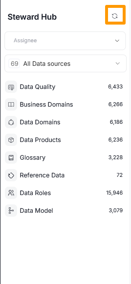 You can also refresh the suggestions manually by pressing the refresh button in the Steward Hub's sidebar. We suggest doing this periodically, especially after major changes to your repository.