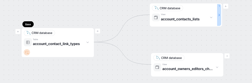 On the lineage diagram, this connection will be denoted by a single line between two objects, without any column links