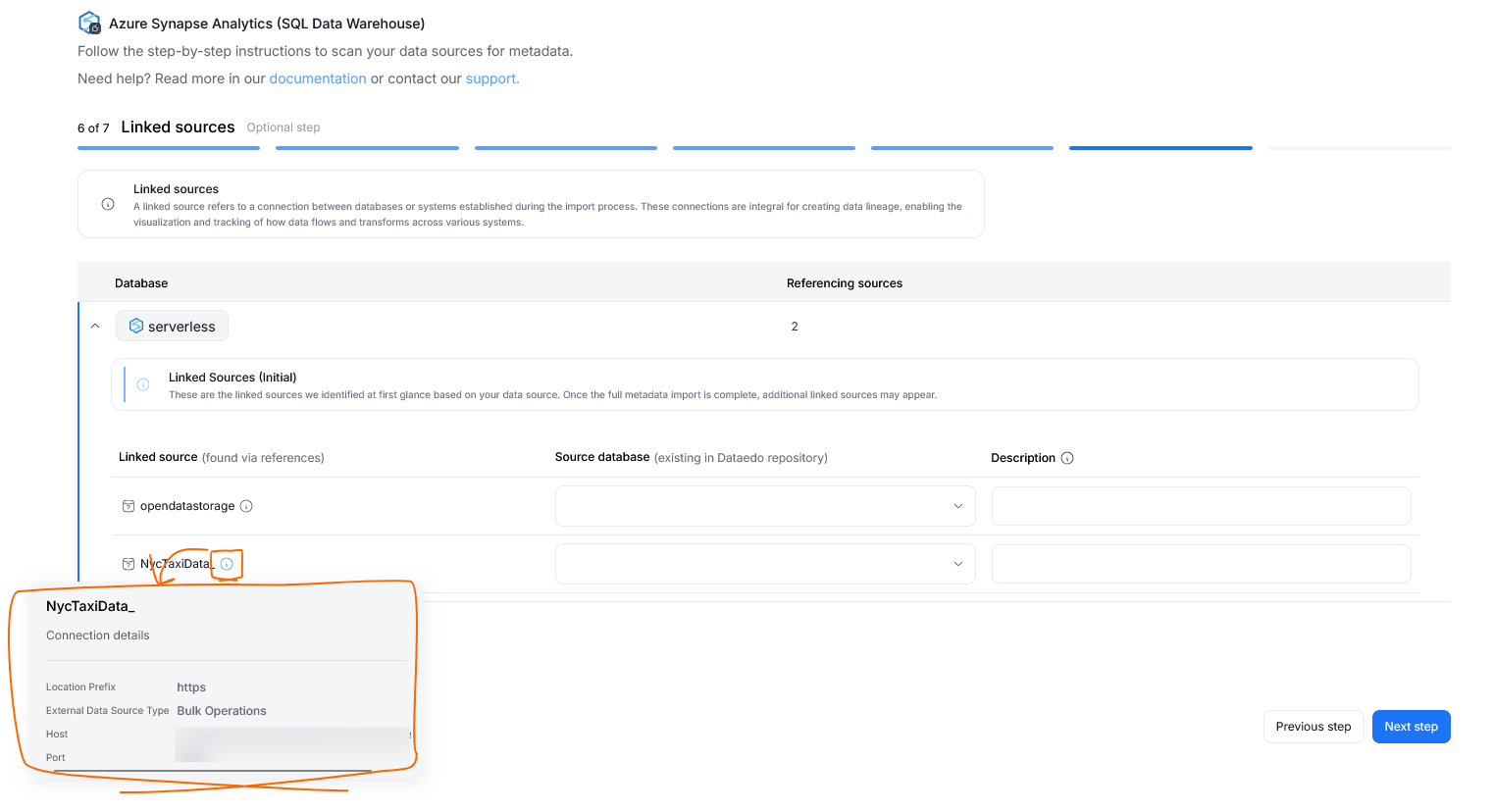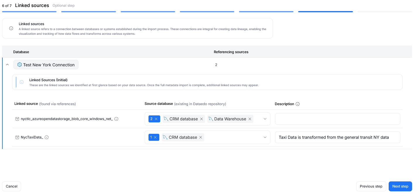 Linked sources fulfill two roles in Dataedo. First, is to keep track of connections and dependencies between databases in your repository. This is especially useful when it comes to representing repository-wide lineage.