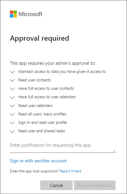 If the user encounters a screen like this, it means that requesting Admin consent is disabled for your Azure subscription: