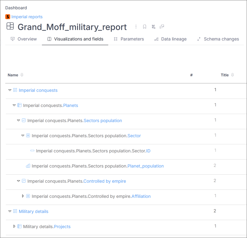 Lineage is built at a column level, down to metrics, facts and attribute forms, helping you clearly understand data flow across your BI environment.